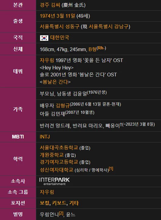 김윤아 프로필