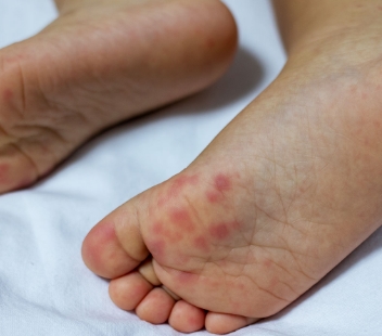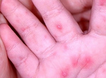 2. 발진과 수포 : 발열 이후 손, 발, 입 안쪽에 작은 붉은 반점이 생기고, 빠르게 수포로 변합니다.