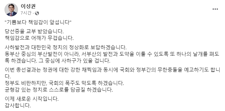 부산 사하갑 지역구에서 국민의힘 이성권 전 의원이 현역인 민주당 최인호 의원을 꺾고 당선되어 화제가 되고 있습니다.